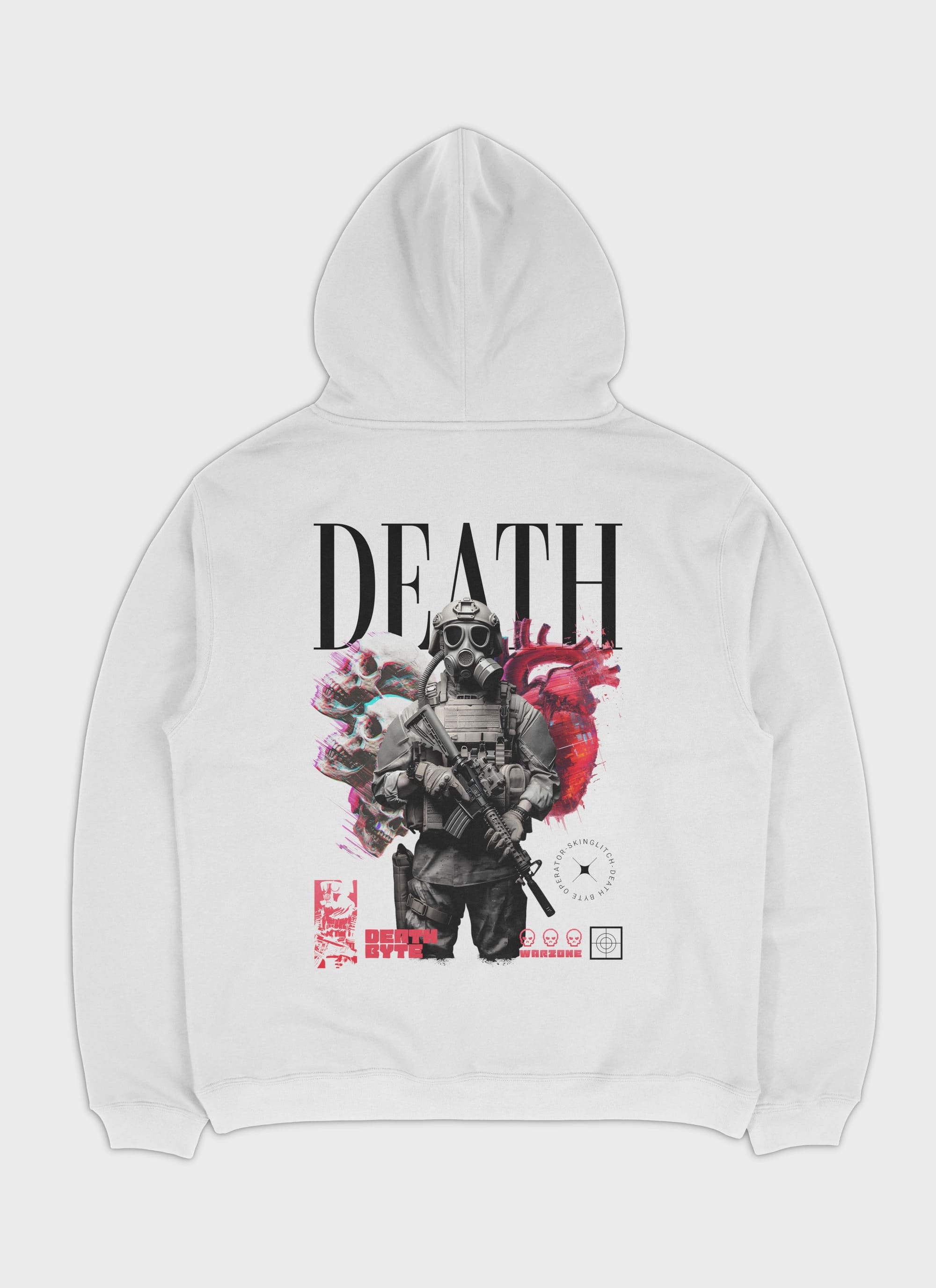 Der „Death Operator“ Hoodie ist dein digitaler Tarnanzug für den Urban Combat Mode. Das Motiv zeigt einen Operator in voller Gear – Gasmaske, Rifle im Anschlag, ready for whatever drops next. Umrahmt von glitchenden Skulls und digitalen Blutspritzern eines Gamer Herzens, verschmilzt das Design pixelgenau mit der Ästhetik moderner Taktik-Shooter.