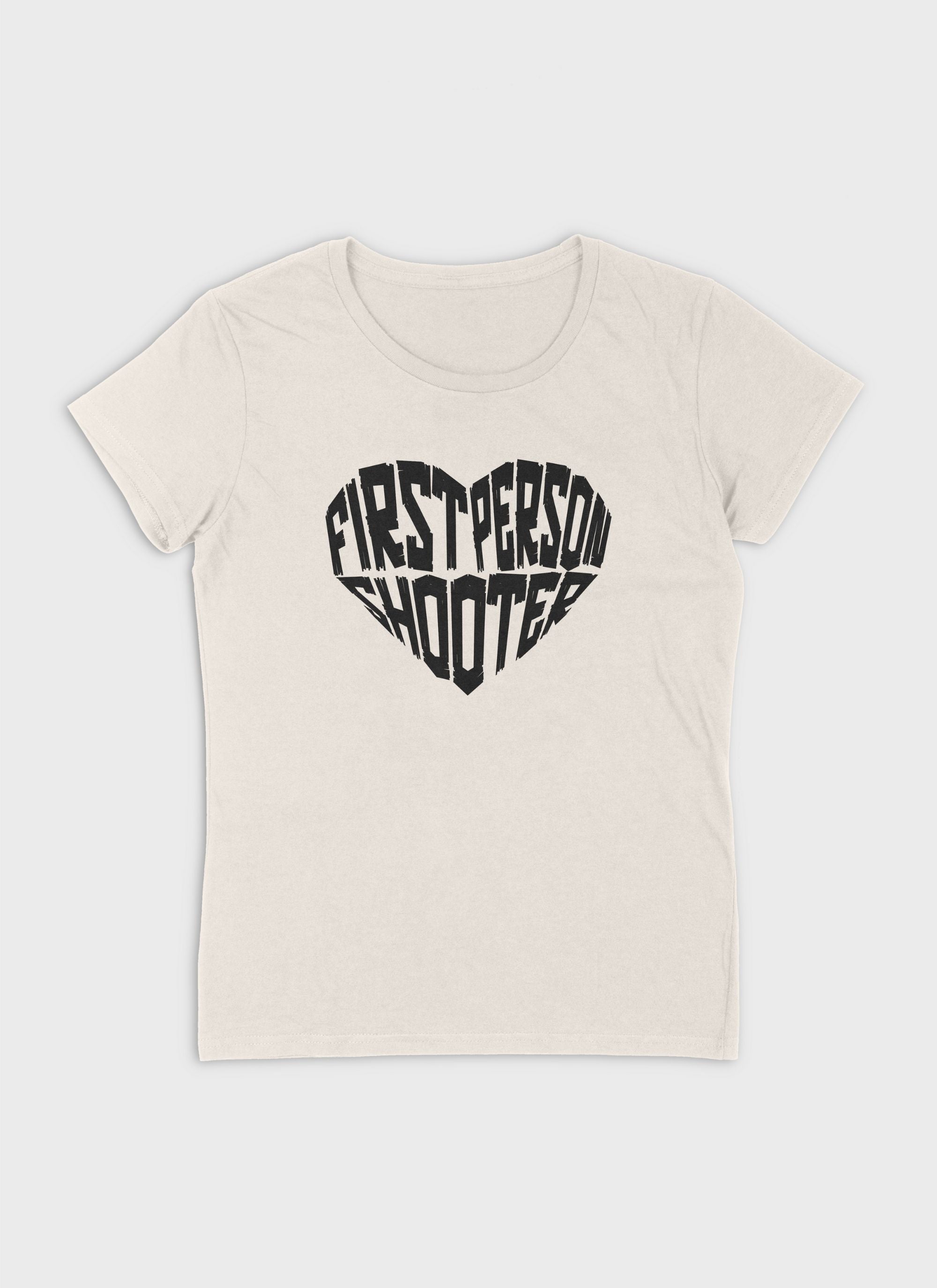 FPS-Gamerinnen aufgepasst: Dieses Girlie T-Shirt zeigt deine Liebe zu First Person Shooters auf einzigartige Weise! Das Herz-Design aus dem Schriftzug „First Person Shooter“ bringt deine Leidenschaft stylish und femininen Schnitt perfekt zusammen.