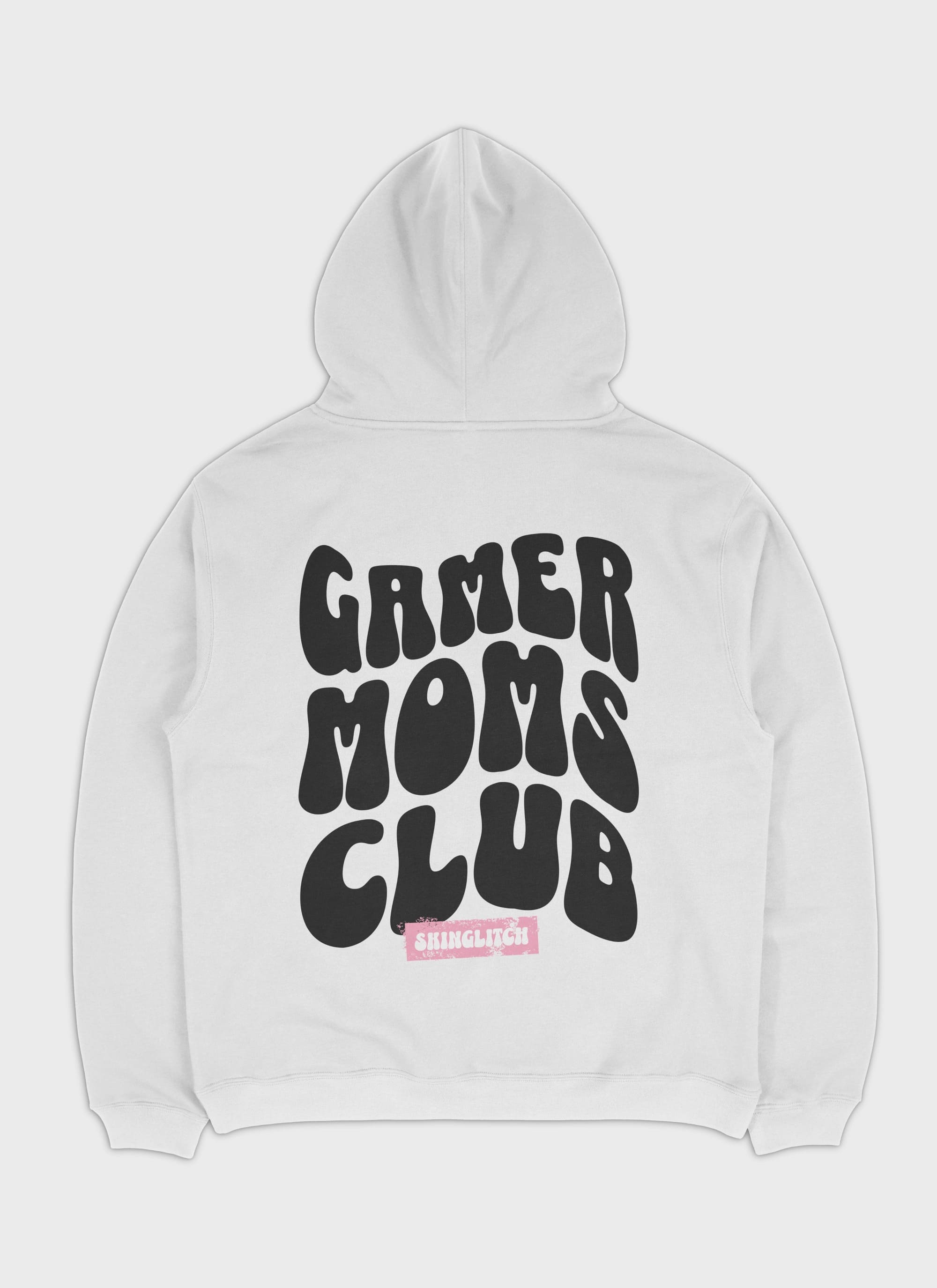 Der Gamer Moms Club Hoodie von SkinGlitch bringt deine Mom-Power in ein Design, das auffällt: Der große Wavy-Font Backprint in fließender Retro-Typografie mit SkinGlitch-Tag in Rosa steht für Charakter, Humor und Streetwear mit Gamer-Vibe.