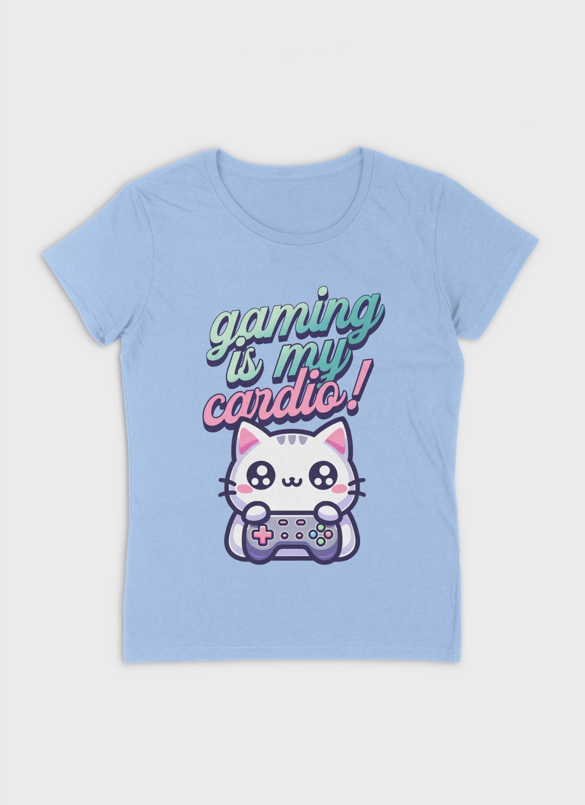 Design: Großflächiges Motiv „Gaming is my Cardio“ mit süßer Katze