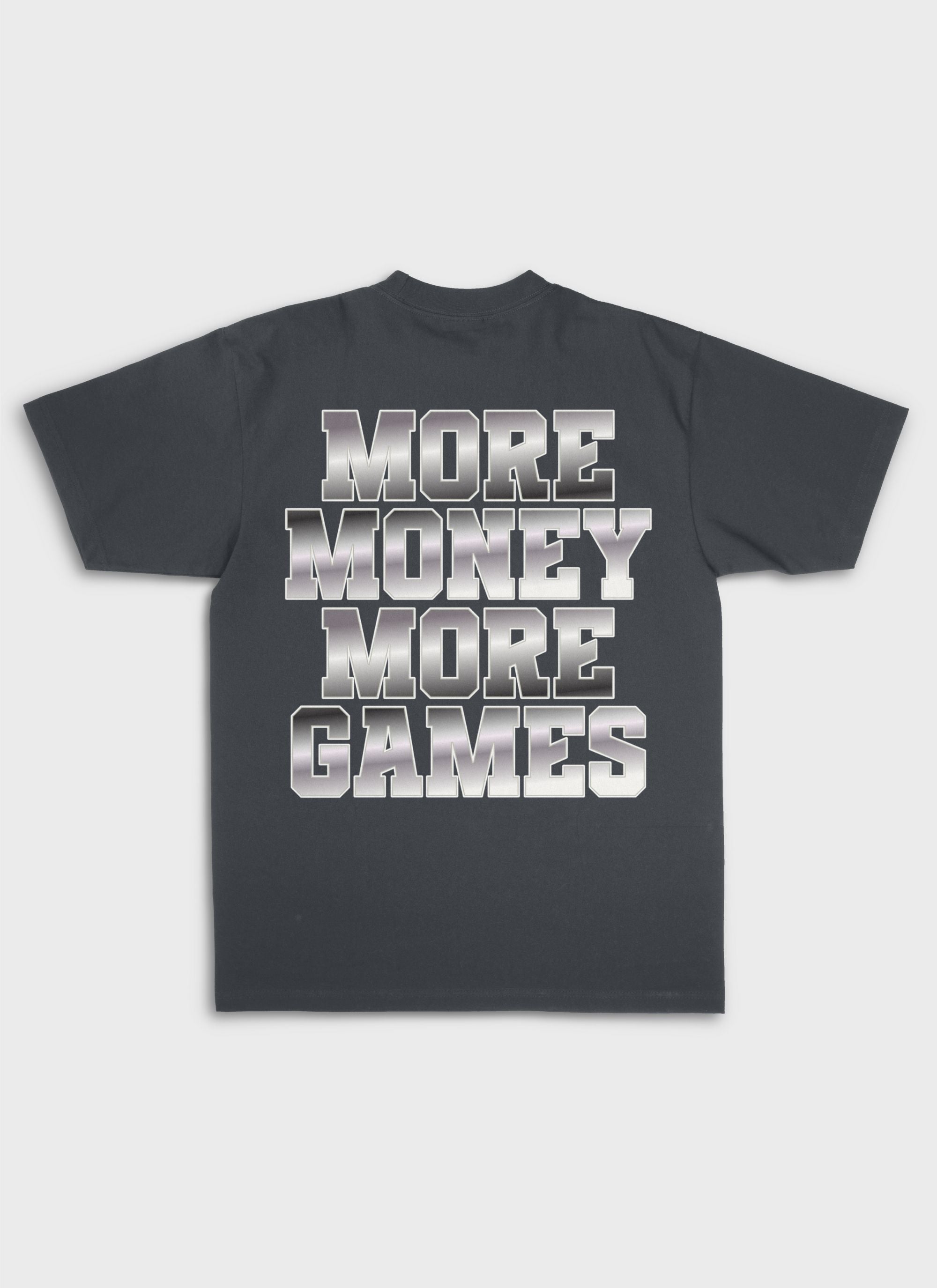 Dieses Shirt ist dein Reminder, warum du dir den Hustle gibst: Mehr Geld, mehr Games, mehr Level-Up. Mit dem fetten Backprint wird klar, wo deine Prioritäten liegen – und das in 3D-Style mit maximalem Streetwear-Vibe.